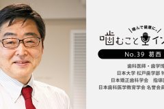 特に、あごの骨を左右に動かして奥歯ですり潰す噛み方は、あごの骨の発達に深く関わってきます。食べ物を口の中で両側に振り分けて左右バランスよく噛むこと、また足をしっかり床につけ安定した姿勢で噛むことで、あごの骨を丈夫に大きく成長させることができます。 大人でもできていないことの多い「正しい咀嚼」。親子で「正しい咀嚼」を身につけ、口腔の健康を保っていきましょう。
