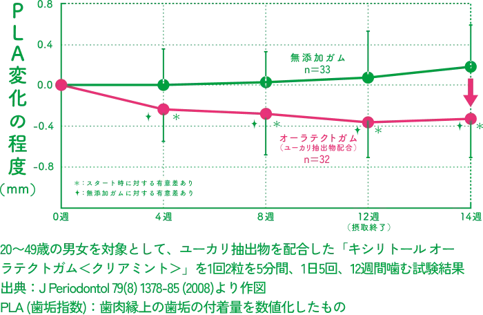 12週間の試験で歯垢の生成を