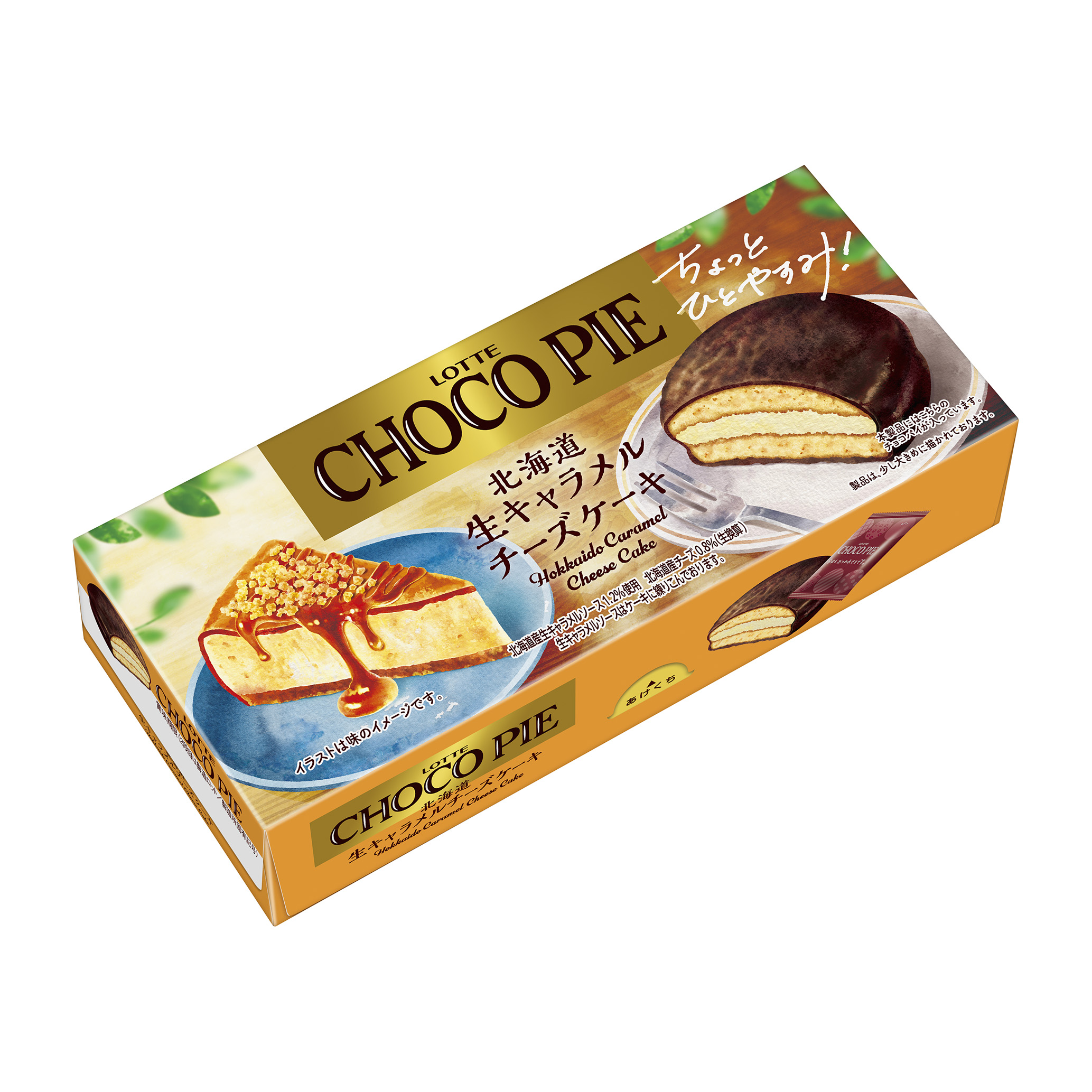 心がほっとする、ひと休みシーンにぴったりな北海道生キャラメルチーズケーキをイメージしたチョコパイ。