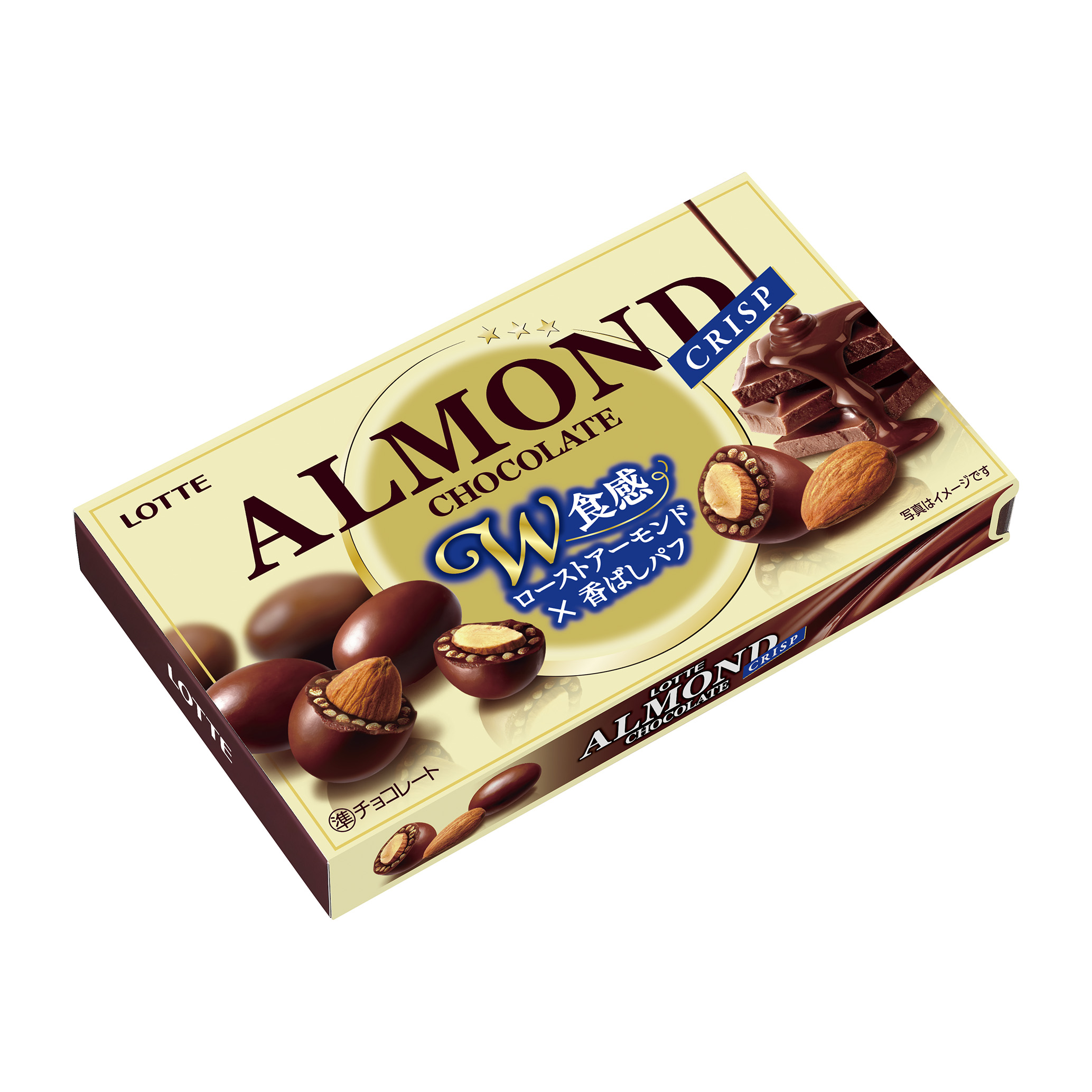 - ローストアーモンド(国内製造)、砂糖、植物油脂、全粉乳、食物繊維、カカオマス、マカダミアナッツペースト、水あめ/乳化剤(大豆由来)、光沢剤、増粘剤(アラビアガム)、香料、甘味料(アスパルテーム・L-フェニルアラニン化合物、アセスルファムK)