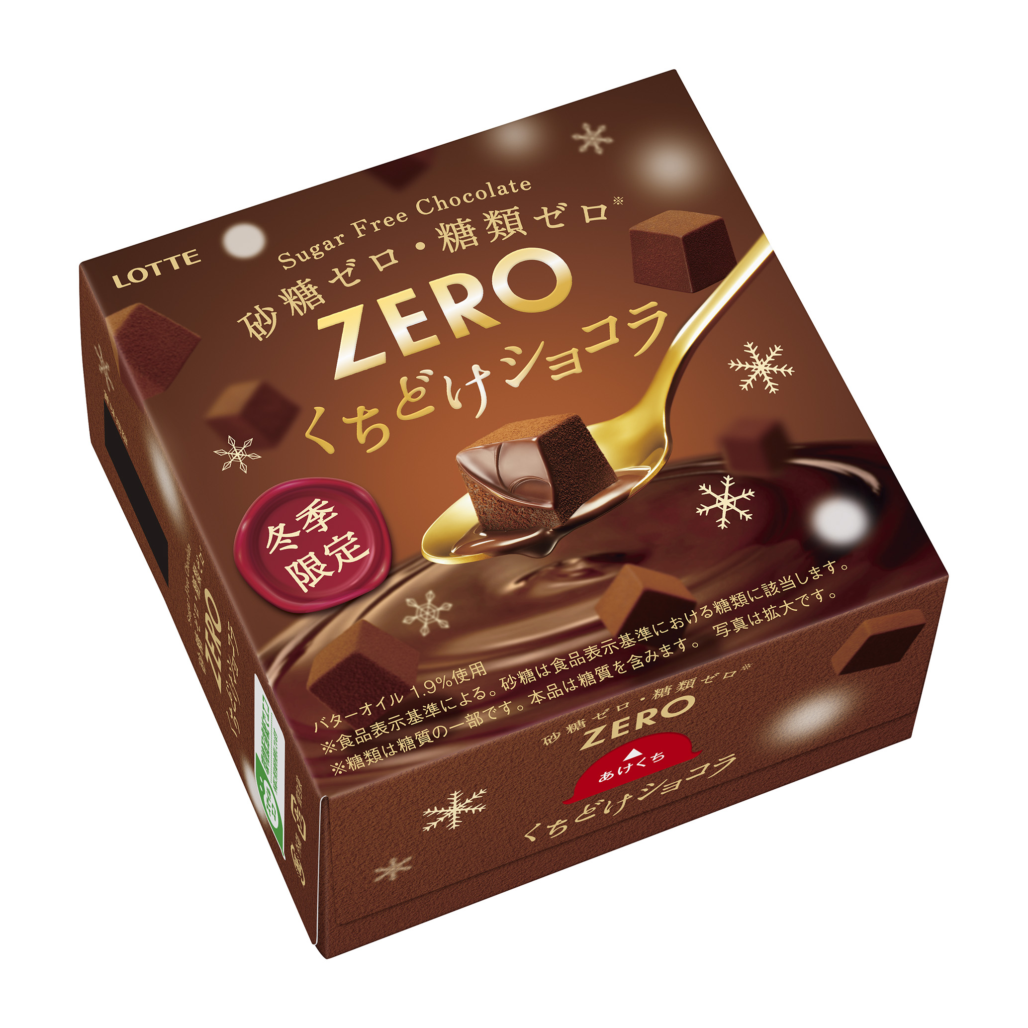 - カカオマス(国内製造)、マルチトール、ココアバター、ココアパウダー、植物油脂、乳等を主要原料とする食品(食物繊維、バター、分離乳たんぱく)、ラクチトール、ミルクペースト、カカオエキス、食塩/乳化剤(大豆由来)、香料、甘味料(アスパルテーム・L-フェニルアラニン化合物、スクラロース)、ビタミンP