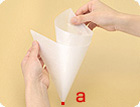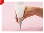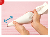 コルネの口部分を持ち、軽く押しながら絞り出します。